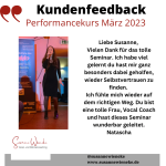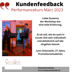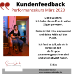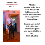 und deiner Darbietung? Was gefällt besonders gut, wovon darf es noch etwas mehr sein?